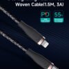 Cavo Intrecciato da C a Lightning 27W 3A, 1,5 Metri PD Nero