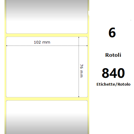 White 102x76mm, 840 Et/Rotolo Z-2000D 4x3x1 Core, 6 Rolls